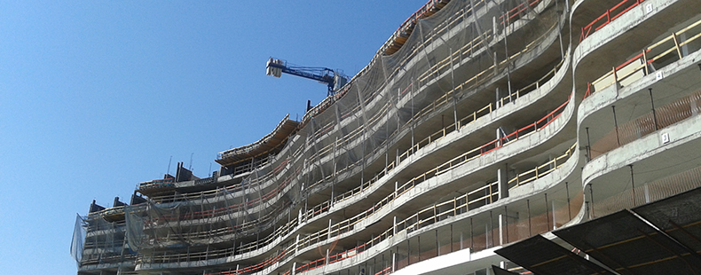El proyecto considera 2 edificios de 12-13 pisos, cuya particularidad son sus antepechos que simulan una ola.